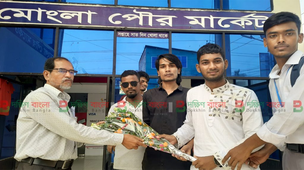 এ সময় তাকে পৌরসভার অন্যান্য কর্মকর্তা, কর্মচারীসহ মোংলা-রামপাল ছাত্র প্রতিনিধির একটি দল ফুলেল শুভেচ্ছা দিয়ে অভিনন্দন জানান।