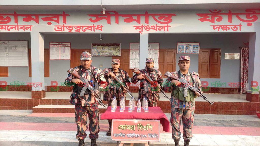 গোয়েন্দা তথ্যের ভিত্তিতে ভোমরা বিওপির পৃথক বিশেষ আভিযানিক দল সদর থানাধীন লক্ষীদাড়ি নামক স্থান হতে ১৩ বোতল ভারতীয় মদ ও ৫৫ হাজার ৬০৫ টাকা মূল্যের ভারতীয় শাড়ি, ক্রীম, খৈনী এবং ধুপকাঠি আটক করে।