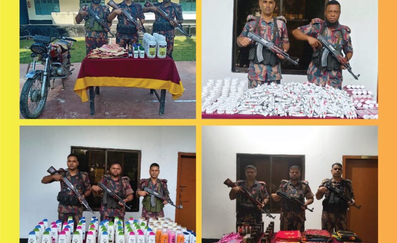 বেনাপোল বিজিবির অভিযানে মাদকদ্রব্য ও চোরাচালান পণ্য আটক