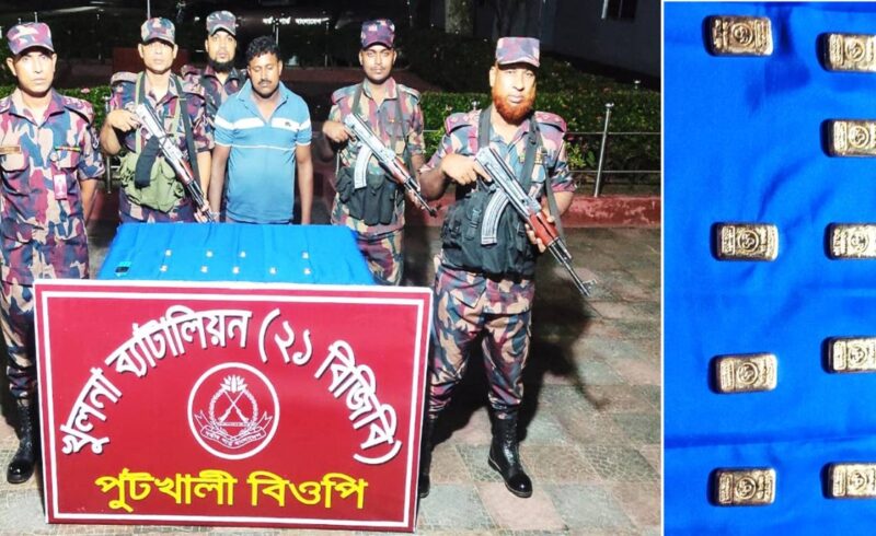 যশোরে বিজিবির অভিযানে ১ কোটি ২৬ লক্ষ ৪০ হাজার টাকা মুল্যের স্বর্ণবারসহ আটক -১