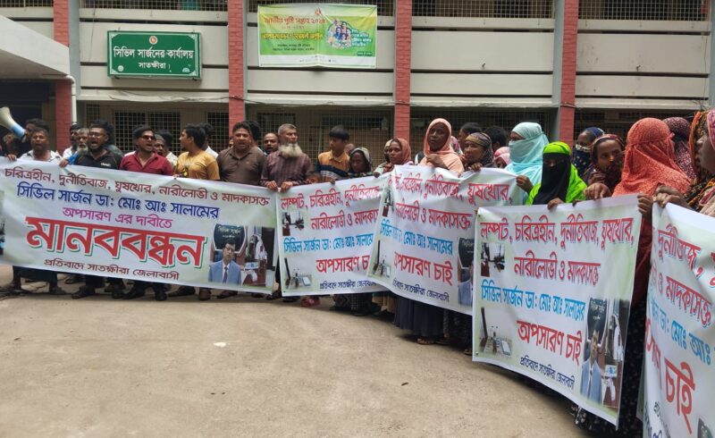 সাতক্ষীরার সিভিল সার্জনের অপসারণের দাবিতে মানববন্ধন ও অফিস ঘেরাও
